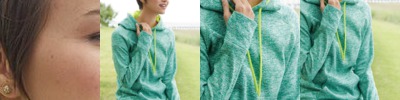 • Contrast color hood lining and drawcord