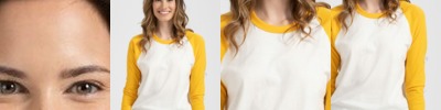 - Contrast color three-quarter sleeves